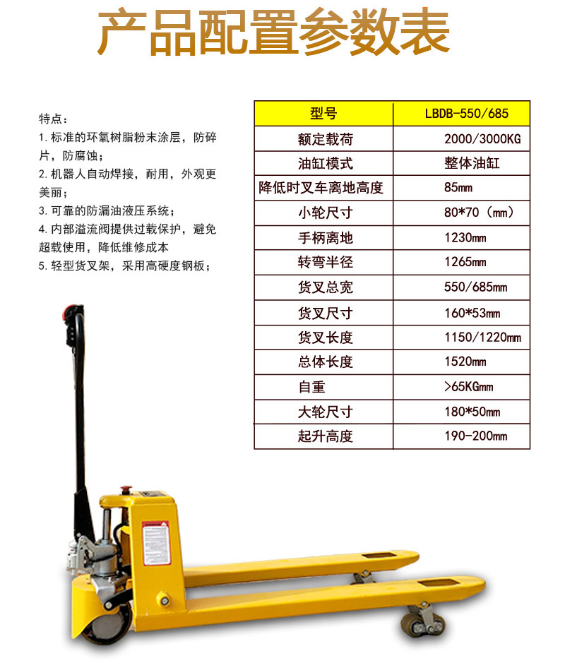 半電動(dòng)液壓搬運(yùn)車車身小巧:步行式半電動(dòng)搬運(yùn)車操作簡(jiǎn)易:半電動(dòng)液壓搬運(yùn)車攜帶方便:步行式半電動(dòng)搬運(yùn)車動(dòng)力強(qiáng)勁。產(chǎn)品規(guī)格: